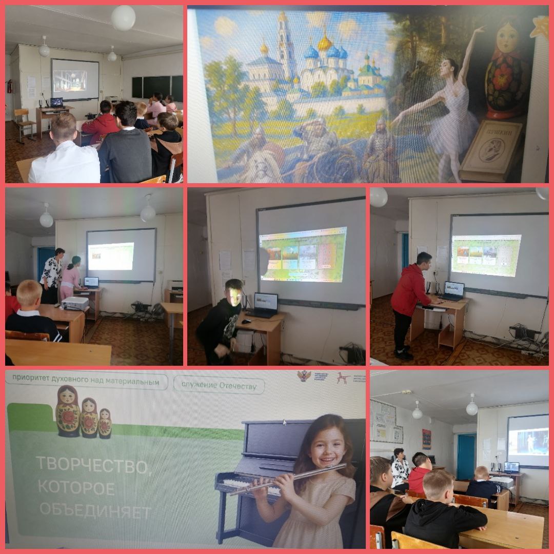 Особое внимание уделили роли российской культуры в мировом наследии — вспомнили гениев отечественного искусства: Пушкина, Чайковского, Репина, Плисецкую.Учащиеся с интересом смотрели видеоматериалы, в том числе выступление продюсера Юрия Аксюты, и выполняли интерактивные задания, соотнося музыку и картины по настроению. Было подчёркнуто, что творчество доступно каждому: главное — желание, труд и вера в себя. Занятие прошло в формате диалога, что позволило школьникам активно высказывать своё мнение, делиться увлечениями и мечтами.